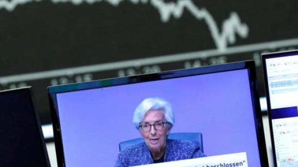 Chủ tịch Ngân Hàng Trung Ương Châu Âu Christine Lagarde. Ảnh chụp trên màn hình, tại thị trường chứng khoán Frankfurt, Đức,