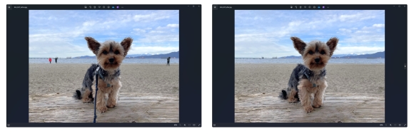 Một hình ảnh trước và sau khi xóa chi tiết thừa (sợi dây xích) bằng phần mềm Photos (Ảnh: Microsoft).