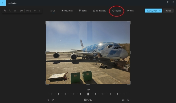 Tại giao diện hiện ra tiếp theo, bạn nhấn vào nút "Tẩy xóa" (biểu tượng chiếc tẩy) trên menu.