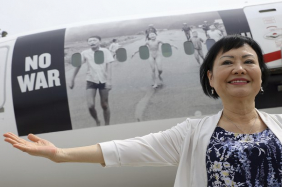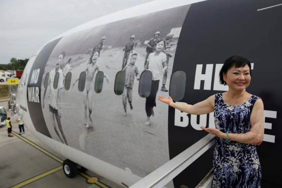 Bức ảnh của hãng tin Associated Press năm 1972, trong đó bé gái chạy với cơ thể đầy vảy bom napalm, được khắc trên chiếc máy bay của tổ chức phi chính phủ tư nhân đang chở những người tị nạn đến thành phố Regina, thủ phủ của tỉnh Saskatchewan của Canada.