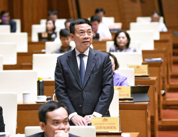 Bộ trưởng Thông tin và Truyền thông Nguyễn Mạnh Hùng trả lời chất vấn Quốc hội chiều 7/11. Ảnh: Ngọc Thành