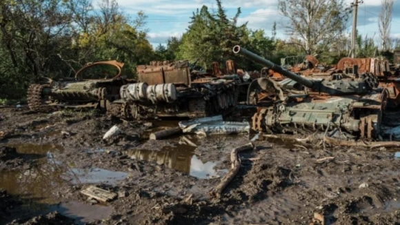 Một số phương tiện quân sự bị hư hỏng của Nga nằm trên bãi lầy ở Izium, Ukraine, ngày 22/9/2022. (Ảnh: Getty)