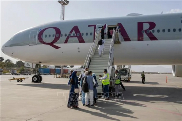 Máy bay Boeing 777 của Hãng hàng không Qatar Airways chờ đón khách tại sân bay quốc tế Hamid Karzai ở thủ đô Kabul (Afghanistan). Ảnh tư liệu (minh họa): AFP/TTXVN.